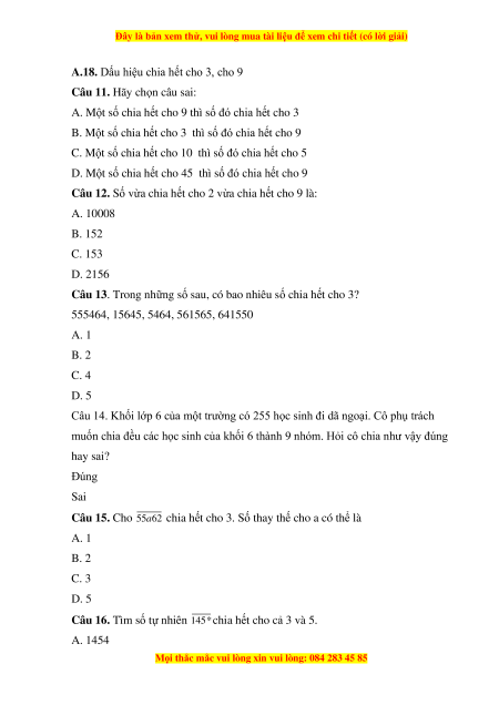 A.18. Dấu hiệu chia hết cho 3, cho 9 Câu 11.