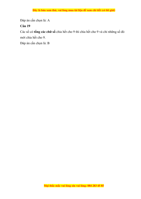 chúng không chia hết cho 9. Đáp án cần chọn là: D Câu 18.