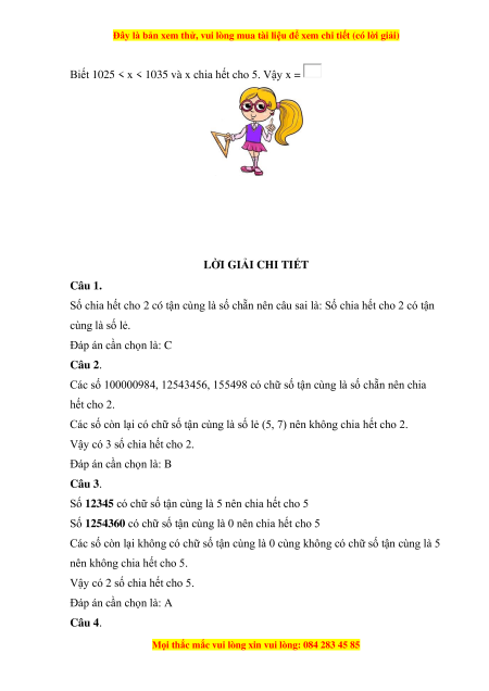 Câu 3. Trong những số sau, có bao nhiêu số chia hết cho 5?