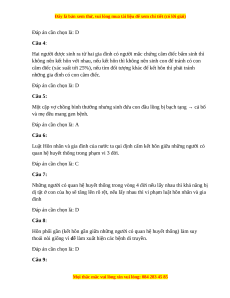 quan hệ huyết thống trong phạm vi 3 đời. Đáp án cần chọn là: C Câu 7: