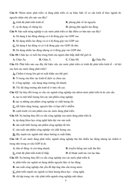 Câu 1: Phát biểu nào sau đây không đúng với các nước đang phát triển?