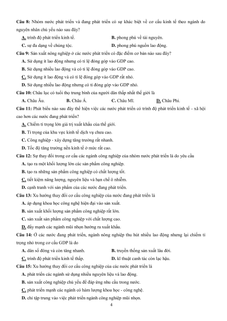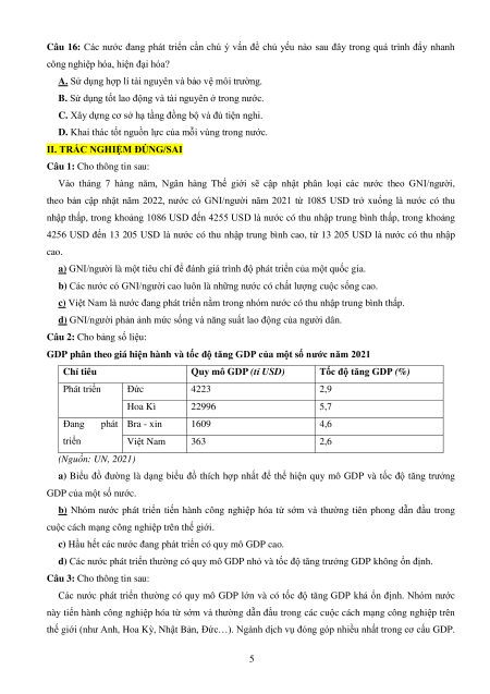 Câu 1: Phát biểu nào sau đây không đúng với các nước đang phát triển?