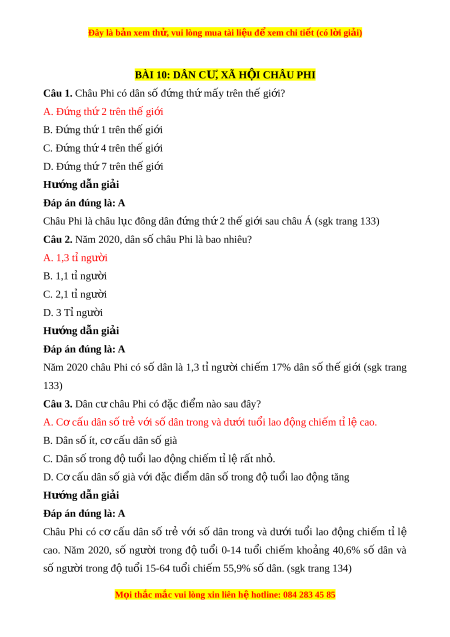 Đây là bản xem th , vu ử i lòng mua tài li u ệ đ xe ể m chi ti t ế (có l i ờ gi i ả ) BÀI 10: DÂN C , X Ư Ã H I Ộ CHÂU PHI
