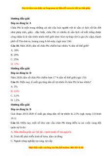 Câu 10. Năm 2020, dân số châu Phi chi m ế bao nhiêu % dân s t ố h gi ế i ớ ? A. 18% B. 20% C. 25% D. 17% Hư ng d ớ ẫn gi i ả Đáp án đúng là: D