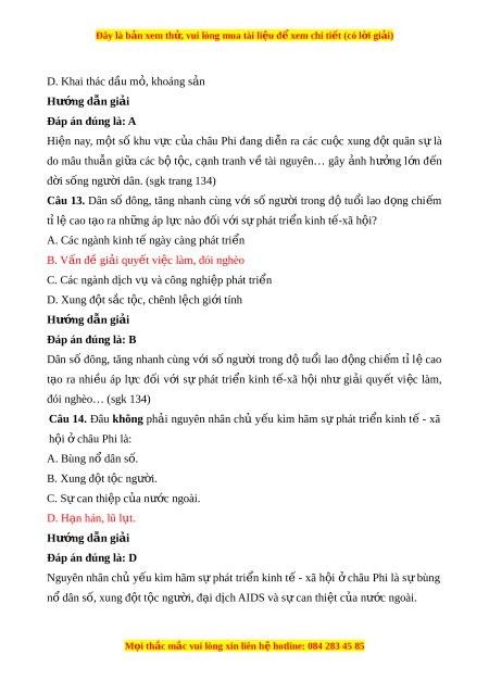Đây là bản xem th , vu ử i lòng mua tài li u ệ đ xe ể m chi ti t ế (có l i ờ gi i ả ) Hư ng d ớ ẫn gi i ả Đáp án đúng là: A Châu Phi là m t ộ trong nh ng ữ cái nôi c a ủ loài ngư i ờ v i ớ di s n ả có l ch ị sử lâu đ i ờ như phép tính, gi y…đ ấ c ặ bi t ệ , châu Phi có nhi u ề di s n ả l ch ị sử n i ổ ti ng ế đư c ợ công nh n ậ là di s n ả thiên nhiên th ế gi i ớ nh : ư Kim t ự tháp t ừ Gi-gia (Ai c p) ậ , thành