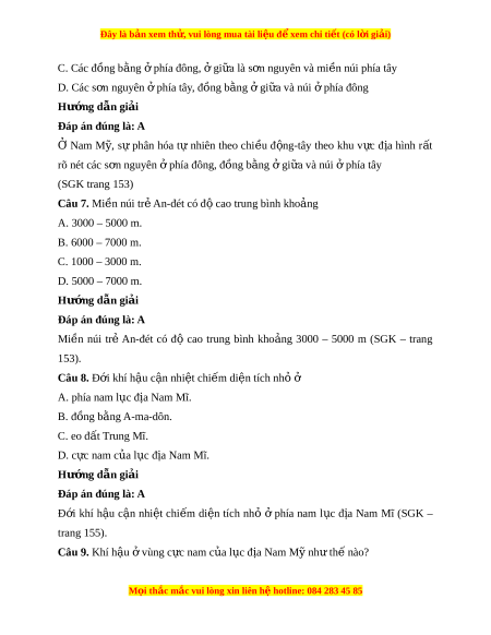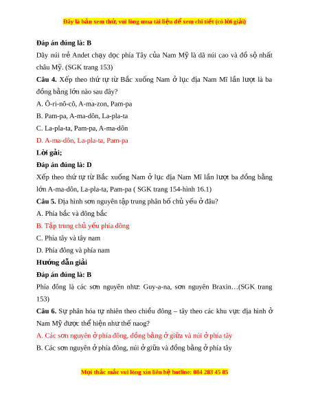 Đây là bản xem th , vu ử i lòng mua tài li u ệ đ xe ể m chi ti t (c ế ó l i ờ gi i ả ) C. Các đồng b ng ằ phí ở a đông, gi ở a l ữ à s n nguyên và ơ mi n ề núi phía tây D. Các s n ơ nguyên phí ở a tây, đ ng b ồ ng ằ gi ở a và núi ữ phí ở a đông Hư ng d ớ ẫn gi i ả Đáp án đúng là: A Ở Nam M ,