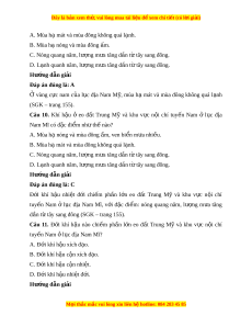 Câu 10. Khí h u eo đ t Trung M và khu v c n i chí tuy n Nam l c đ aậ ở ấ ỹ ự ộ ế ở ụ ị