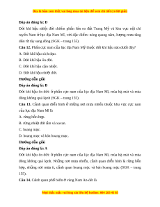B. Mùa hạ nóng và mùa đông m ấ . C. Nóng quang năm, lư ng m ợ a ư tăng d n t ầ ừ tây sang đông. D. L nh quanh ạ năm, lư ng m ợ a t ư ăng d n t ầ t ừ ây sang đông. Hư ng d ớ ẫn gi i ả Đáp án đúng là: A Ở vùng c c ự nam c a ủ l c ụ đ a ị Nam M , ỹ mùa h