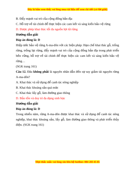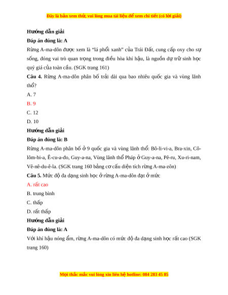 Đây là bản xem th , vu ử i lòng mua tài li u ệ đ xe ể m chi ti t (c ế ó l i ờ gi i ả ) Hư ng d ớ ẫn gi i ả Đáp án đúng là: A R ng ừ A-ma-dôn đư c ợ xem là “lá ph i ổ xanh” c a ủ Trái Đ t ấ , cung c p ấ oxy cho sự
