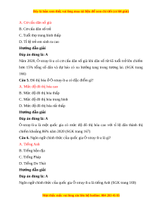 ạ sao nói dân cư Ô-xtray-li-a l i ạ ngày càng già hóa? A. Dân số trên 65 tu i ổ tr l ở ên chi m ế 15% t ng s ổ dân ố B. Dân số nhóm t 0 đ ừ n 14 t ế u i ổ chi m ế 19% t ng s ổ dân ố C. T l ỉ gi ệ a tang dân s t ố nhi ự ên cao D. C c ơ ấu dân số trẻ Hư ng d ớ ẫn gi i ả Đáp án đúng là: A M i