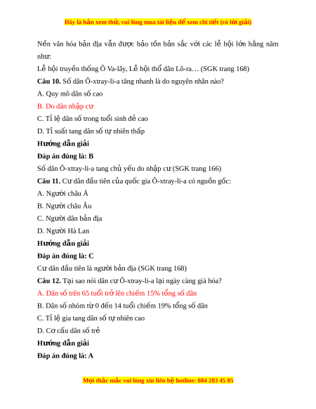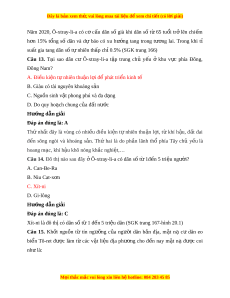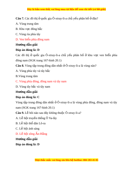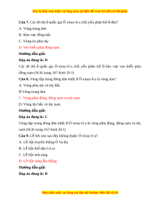 Đây là bản xem th , vu ử i lòng mua tài li u ệ đ xe ể m chi ti t (c ế ó l i ờ gi i ả ) Câu 7. Các đô th ị qu ở ốc gia Ô-xtray-li-a ch y ủ u phân b ế ố đâu? ở A. Vùng trung tâm B. Khu v c đông b ự c ắ C. Vùng rìa phía tây D. Ven bi n phí ể a đông nam Hư ng d ớ ẫn gi i ả Đáp án đúng là: D Các đô thị ở qu c