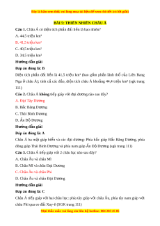 Câu 1. Châu Á có di n t ệ ích ph n đ ầ t ấ li n l ề à bao nhiêu? A. 44,5 tri u km ệ ² B. 41,5 tri u km ệ ² C. 40,5 tri u km ệ ² D. 34,5 tri u km ệ ² Hư ng d ớ ẫn gi i ả Đáp án đúng là: B Di n ệ tích ph n ầ đ t ấ li n ề là 41,5 tri u ệ km² (bao g m ồ ph n ầ lãnh thổ c a ủ Liên Bang