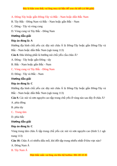 Đây là bản xem th , vu ử i lòng mua tài li u ệ đ xe ể m chi ti t ế (có l i ờ gi i ả ) C. Trung Á D. Nam Á Hư ng d ớ ẫn gi i ả Đáp án đúng là: B Châu Á có nhi u d ề u m ầ , khí ỏ đ t ố t p t ậ rung nhi u ề nh t ấ khu v ở c ự Tây Nam Á (hình 5.1 sgk trang 113)