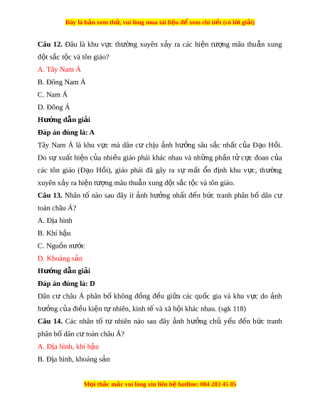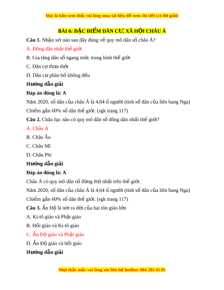 Đây là bản xem th , vu ử i lòng mua tài li u ệ đ xe ể m chi ti t (c ế ó l i ờ gi i ả ) BÀI 6: ĐẶC ĐI M D Ể ÂN C , Ư XÃ H I Ộ CHÂU Á Câu 1. Nh n