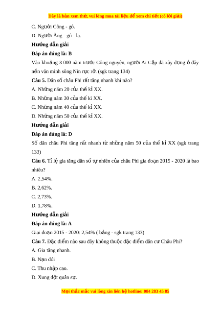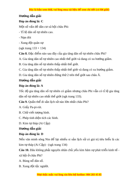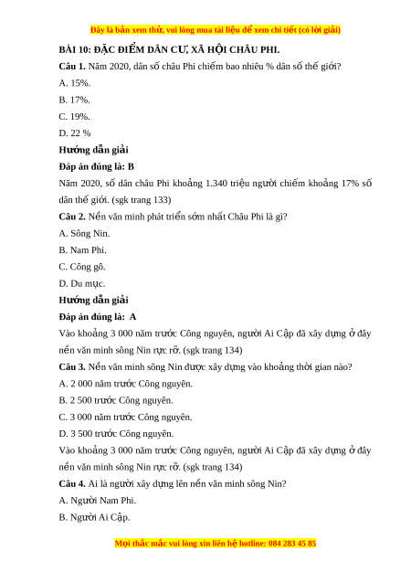 Đây là bản xem th , vu ử i lòng mua tài li u ệ đ xe ể m chi ti t ế (có l i ờ gi i ả ) BÀI 10: ĐẶC ĐI M Ể DÂN C , X Ư Ã H I Ộ CHÂU PHI.