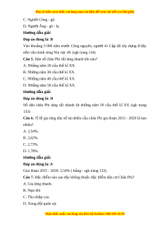 Câu 5. Dân số châu Phi r t ấ tăng nhanh khi nào? A. Nh ng năm ữ 20 c a ủ th k ế X ỉ X. B. Nh ng năm ữ 30 c a t ủ h kì ế XX. C. Nh ng năm ữ 40 c a t ủ h k ế ỉ XX. D. Nh ng năm ữ 50 c a ủ th k ế X ỉ X. Hư ng ớ d n gi ẫ i ả