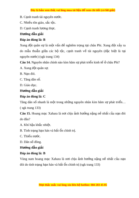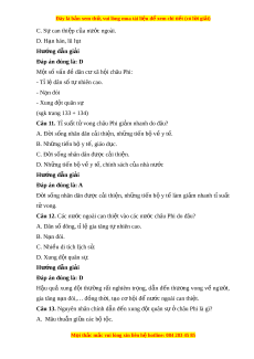 Câu 12. Các nư c ngoài ớ can thi t ệ vào các nư c châu ớ Phi do đâu? A. Dân số đông, tỉ l gi ệ a tăng t nhi ự ên cao. B. N n ạ đói. C. Nhi u di ề tích l ch s ị . ử D. Xung đ t ộ quân s . ự Hư ng ớ d n gi ẫ i ả Đáp án đúng là: D H u ậ quả xung đ t ộ thư ng ờ r t ấ nghiêm tr ng, ọ d n ẫ đ n ế thư ng ơ vong v ề ngư i ờ , gia tăng n n đói ạ ,… đồng th i ờ , t o ạ c h ơ i ộ đ n ể ư c ớ ngoài can thi t ệ .