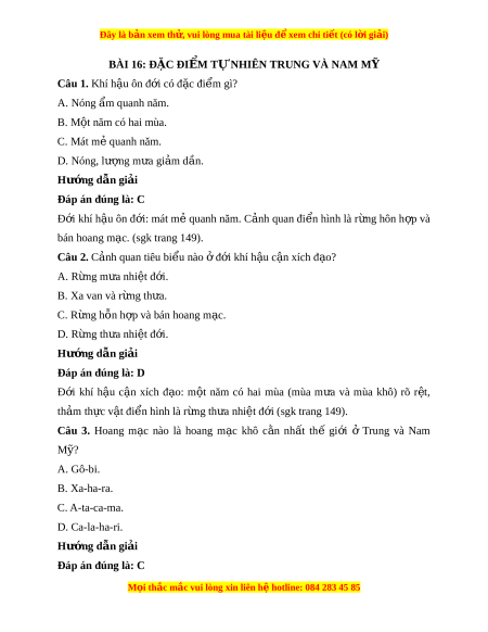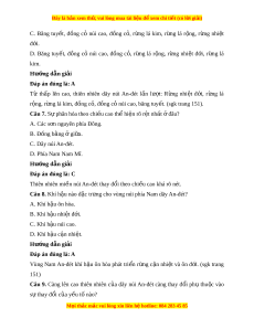 ộ năm có hai mùa (mùa m a ư và mùa khô) rõ r t ệ , th m ả th c v ự t ậ đi n hì ể nh là r ng t ừ h a nhi ư t ệ đ i ớ (sgk trang 149). Câu 3. Hoang m c ạ nào là hoang m c ạ khô c n ằ nh t ấ thế gi i ớ ở Trung và Nam Mỹ? A. Gô-bi. B. Xa-ha-ra. C. A-ta-ca-ma. D. Ca-la-ha-ri. Hư ng d ớ ẫn gi i ả Đáp án đúng là: C M i