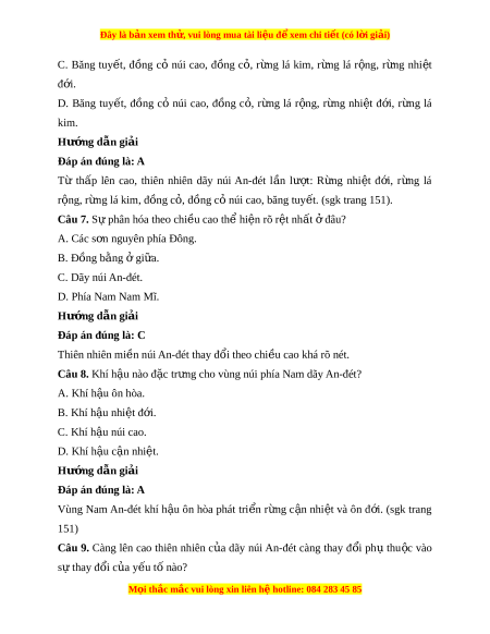 Câu 6. Thiên nhiên dãy núi An-đét thay đ i ổ t t ừ h p l ấ ên cao l n l ầ ư t ợ là? A. R ng ừ nhi t ệ đ i ớ , r ng ừ lá r ng, ộ r ng ừ lá kim, đ ng ồ c , ỏ đ ng ồ cỏ núi cao, băng tuy t ế . B. R ng ừ lá r ng, ộ r ng ừ lá kim, đ ng ồ c , ỏ đ ng ồ cỏ núi cao, băng tuy t ế , r ng ừ nhi t ệ đ i ớ . M i