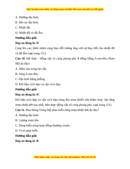 ậ vô cùng phong phú ở đ ng ồ b ng ằ A-ma-dôn (Nam Mĩ) do đâu? A. N m ằ sâu trong l c đ ụ a. ị B. Sông A-ma-dôn. C. Địa hình b ng ph ằ ng. ẳ D. Khí h u ậ xích đ o và ạ c n xí ậ ch đ o. ạ Hư ng d ớ ẫn gi i ả Đáp án đúng là: D Khí h u ậ xích đ p ạ và c n ậ xích đ o ạ nóng m ẩ m a ư nhi u ề nên th m ả th c ự v t ậ r ng ừ m a ư nhi t ệ đ i ớ bao ph , h ủ n t ệ h c- ự đ ng ộ v t