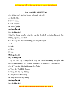Câu 1. Lãnh thổ châu Đ i ạ Dư ng ơ g m ồ m y b ấ ph ộ n ậ ? A. Hai b ph ộ n. ậ B. Ba bộ ph n. ậ C. Bốn b ph ộ n. ậ D. Năm b ph ộ n. ậ Hư ng d ớ ẫn gi i ả Đáp án đúng là: A Châu Đ i ạ dư ng ơ g m ồ hai bộ ph n: ậ L c ụ đ a