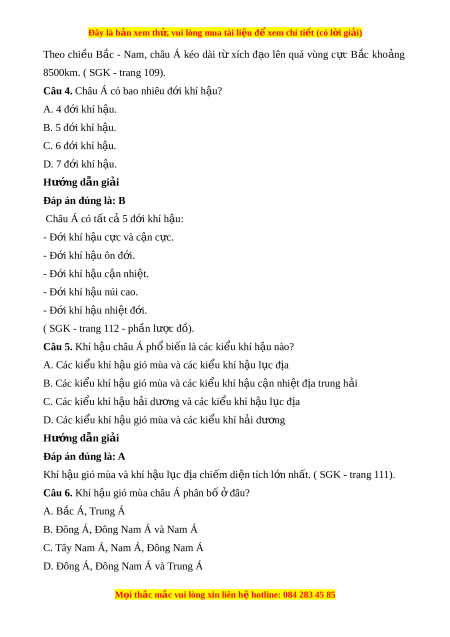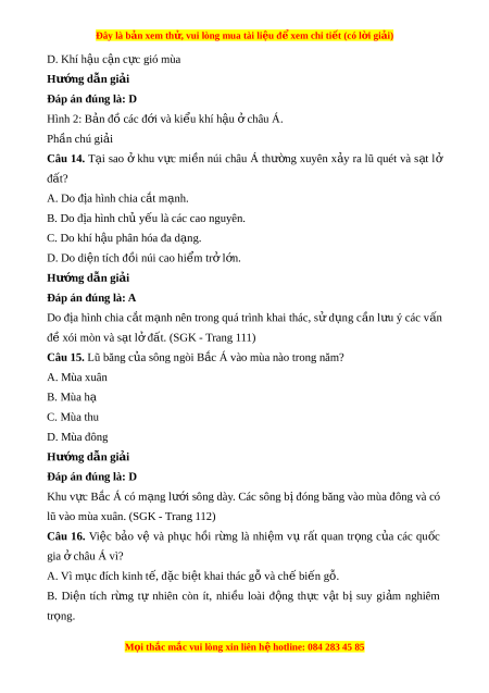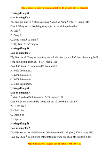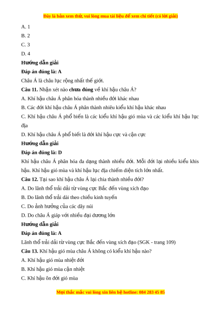 Đây là bản xem th , vu ử i lòng mua tài li u ệ đ xe ể m chi ti t ế (có l i ờ gi i ả ) A. 1 B. 2 C. 3 D. 4 Hư ng d ớ ẫn gi i ả Đáp án đúng là: A Châu Á là châu l c ụ r ng nh ộ t ấ th gi ế i ớ . Câu 11. Nh n