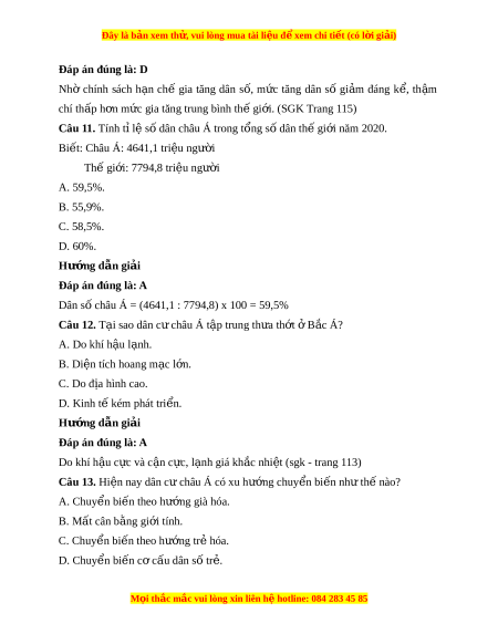 Đây là bản xem th , vu ử i lòng mua tài li u ệ đ xe ể m chi ti t (c ế ó l i ờ gi i ả ) Đáp án đúng là: D Nhờ chính sách h n ạ chế gia tăng dân s , ố m c ứ tăng dân số gi m ả đáng k , ể th m ậ chí th p h ấ n m ơ c