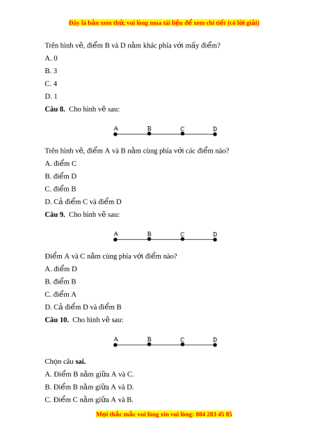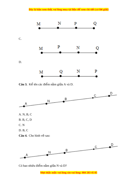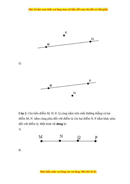 Đây là bản xem th , vu ử i lòng mua tài li u ệ đ xe ể m chi ti t ế (có l i ờ gi i ả ) D. Câu 2. Cho bốn đi m ể M; N; P; Q cùng n m ằ trên m t ộ đư ng t ờ h ng và ẳ hai đi m ể M; N n m ằ cùng phía đối v i ớ đi m ể Q còn hai đi m ể N, P n m ằ khác phía đối v i ớ đi m ể Q. M t
