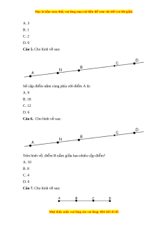 Câu 5. Cho hình vẽ sau: Số c p ặ đi m ể n m ằ cùng phía v i ớ đi m ể A là: A. 9 B. 18 C. 12 D. 6