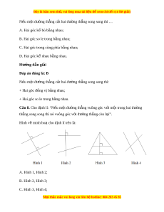 + Hai góc so le trong b ng nhau. ằ Câu 8. Cho đ nh l ị í: “N u ế m t ộ đư ng t ờ h ng ẳ vuông góc v i ớ m t ộ trong hai đư ng ờ th ng