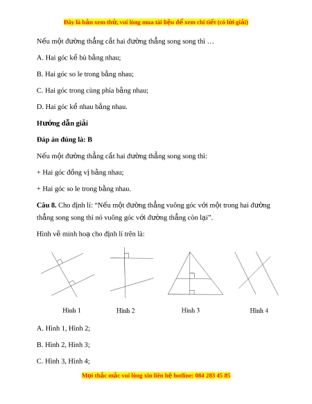 Đây là bản xem th , vu ử i lòng mua tài li u ệ đ xe ể m chi ti t (c ế ó l i ờ gi i ả ) N u ế m t ộ đư ng t ờ h ng c ẳ t ắ hai đư ng ờ th ng ẳ song song thì … A. Hai góc k bù b ề ng nhau; ằ B. Hai góc so le trong b ng ằ nhau;