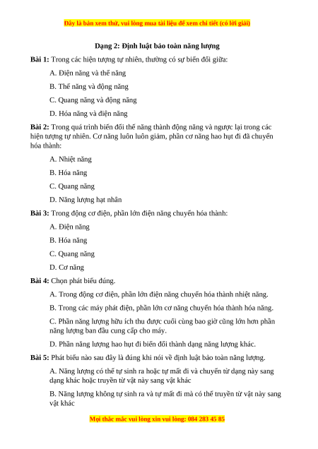 Đây là bản xem thử, vui lòng mua tài liệu để xem chi tiết (có lời giải)