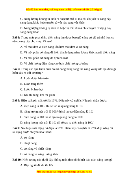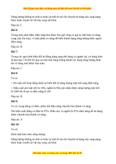 được chuyển hóa thành cơ năng. Đáp án: A Bài 10: Ta có: