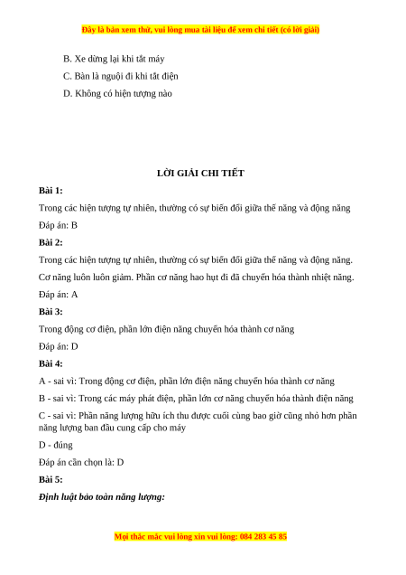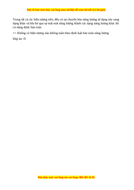 Bài 5: Phát biểu nào sau đây là đúng khi nói về định luật bảo toàn năng lượng.