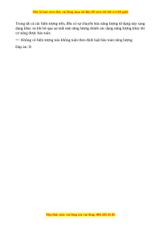 Trong các hiện tượng tự nhiên, thường có sự biến đổi giữa thế năng và động năng Đáp án: B Bài 2: