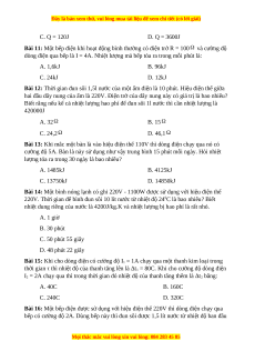 Bài 12: Thời gian đun sôi 1,5l nước của một ấm điện là 10 phút. Hiệu điện thế giữa