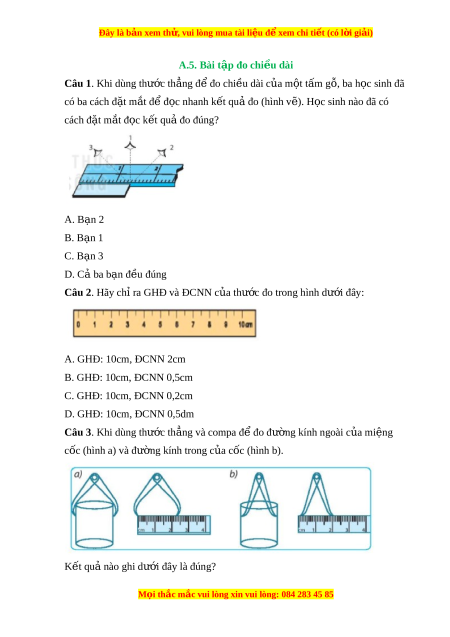 Đây là bản xem th , vu ử i lòng mua tài li u ệ đ xe ể m chi ti t ế (có l i ờ gi i ả ) A.5. Bài t p đo chi ậ u dài ề