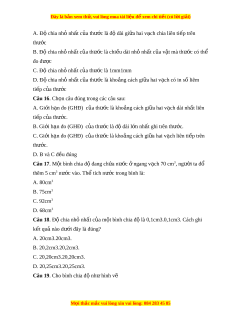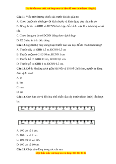 D. Cả 3 đáp án trên đ u đúng ề Câu 12. Ngư i ờ th m ợ ay dùng lo i ạ thư c nào s ớ au đây đ đo cho ể khách hàng? A. Thư c dây ớ có GHĐ 1,5 m, ĐCNN 0,5 cm B. Thư c ớ cu n có G ộ HĐ 10 m, ĐCNN 1 cm C. Thư c