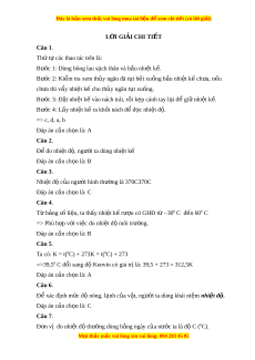 Ta có: K = t(0C) + 273K = t(0C) + 273 =>39,50 C đổi sang đ K ộ envin có giá tr l ị à: 39,5 + 273 = 312,5K Đáp án cần ch n ọ là: A Câu 6. Đ xác đ ể ịnh m c đ ứ ộ nóng, l nh c ạ a ủ v t ậ , ngư i ờ ta dùng khái ni m ệ nhi t ệ đ . ộ Đáp án cần ch n ọ là: C Câu 7. Đ n v ơ ị đo nhi t ệ độ thư ng dùng h ờ ng ằ ngày c a n ủ ư c ớ ta là đ C ộ (0C). M i