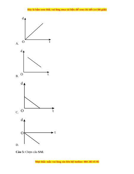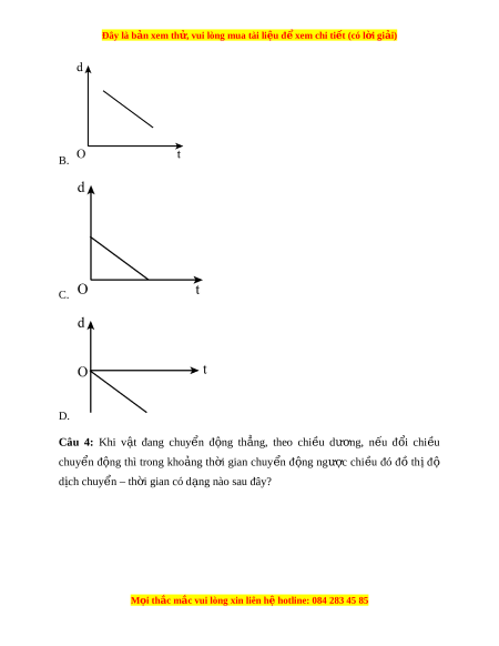 Đây là bản xem th , vu ử i lòng mua tài li u ệ đ xe ể m chi ti t (c ế ó l i ờ gi i ả ) B. C. D. Câu 4: Khi v t ậ đang chuy n ể đ ng ộ th ng, ẳ theo chi u ề dư ng, ơ n u ế đ i ổ chi u ề chuy n ể đ ng ộ thì trong kho ng ả th i ờ gian chuy n ể đ ng ộ ngư c ợ chi u ề đó đ ồ th ịđộ dịch chuy n ể – th i ờ gian có d ng nào ạ sau đây? M i