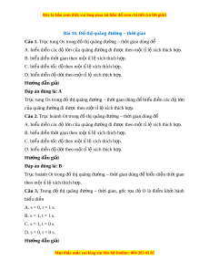 Bài 10. Đồ th quãng đ ị ư ng ờ – th i ờ gian Câu 1. Tr c t ụ ung Os trong đ t ồ h quãng đ ị ư ng – t ờ h i ờ gian dùng đ ể A. bi u di ể n ễ các đ l ộ n c ớ a ủ quãng đư ng ờ đi đư c t ợ heo m t ộ t l ỉ xí ệ ch thích h p. ợ B. bi u di ể n t ễ h i ờ gian theo m t ộ t l ỉ xí ệ ch thích h p. ợ C. bi u di ể n t ễ ốc đ t ộ heo m t ộ t l ỉ xí ệ ch thích h p. ợ D. bi u di ể n ễ đ d ộ i ờ theo m t ộ t l ỉ x ệ ích thích h p. ợ Hư ng d ớ ẫn gi i ả Đáp án đúng là: A Tr c