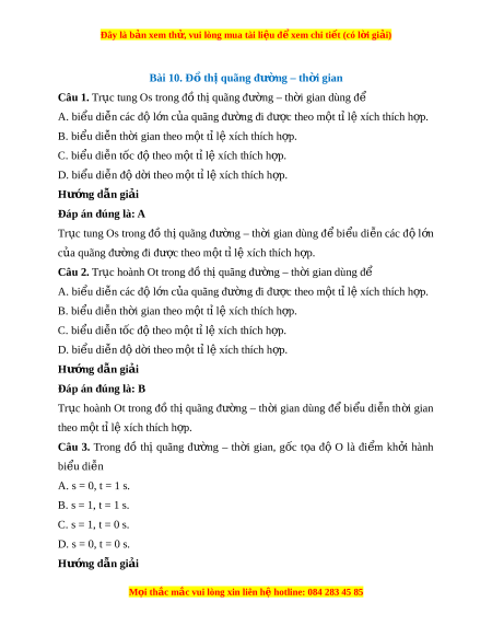 ụ tung Os trong đồ th ịquãng đư ng ờ – th i ờ gian dùng đ ể bi u ể di n ễ các đ ộ l n ớ c a ủ quãng đư ng đi ờ đư c ợ theo m t ộ t l ỉ xí ệ ch thích h p. ợ Câu 2. Tr c hoành O ụ t trong đồ th quãng đ ị ư ng ờ – th i ờ gian dùng đ ể A. bi u di ể n ễ các đ l ộ n c ớ a ủ quãng đư ng ờ đi đư c t ợ heo m t ộ t l ỉ xí ệ ch thích h p. ợ B. bi u di ể n t ễ h i ờ gian theo m t ộ t l ỉ xí ệ ch thích h p. ợ C. bi u di ể n t ễ ốc đ t ộ heo m t ộ t l ỉ xí ệ ch thích h p. ợ D. bi u di ể n ễ đ d ộ i ờ theo m t ộ t l ỉ x ệ ích thích h p. ợ Hư ng d ớ ẫn gi i ả Đáp án đúng là: B Tr c ụ hoành Ot trong đ ồ th ịquãng đư ng ờ – th i ờ gian dùng đ ể bi u ể di n ễ th i ờ gian theo m t ộ tỉ l xí ệ ch thích h p. ợ