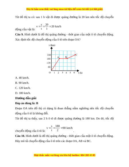 Câu 9. Hình d i là đ th quãng đ ng - th i gian c a m t ô tô chuy n đ ng.ướ ồ ị ườ ờ ủ ộ ể ộ