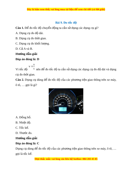 Đây là bản xem th , vu ử i lòng mua tài li u ệ đ xe ể m chi ti t (c ế ó l i ờ gi i ả ) Bài 9. Đo t c đ ố ộ