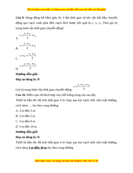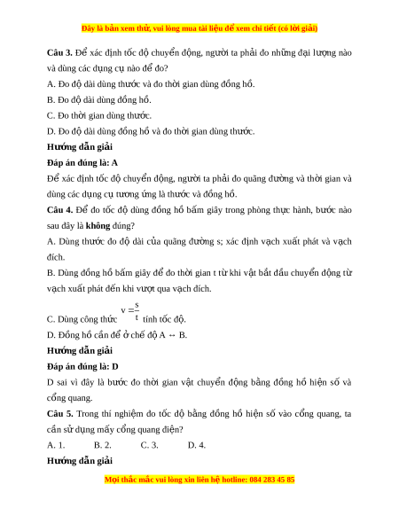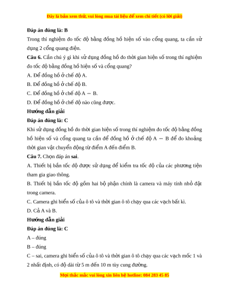 Đây là bản xem th , vu ử i lòng mua tài li u ệ đ xe ể m chi ti t (c ế ó l i ờ gi i ả ) Đáp án đúng là: B Trong thí nghi m ệ đo t c ố độ b ng ằ đ ng ồ hồ hi n ệ số vào c ng ổ quang, ta c n ầ sử d ng 2 c ụ ổng quang đi n. ệ
