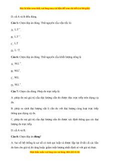 Đây là bản xem th , vu ử i lòng mua tài li u ệ đ xe ể m chi ti t (c ế ó l i ờ gi i ả ) D. c ả A và B đ u đúng. ề Câu 5: Ch n đáp ọ án đúng. Th nguyên c ứ a ủ v n t ậ c l ố à: A. 1 L.T . B. 2 L.T . C. L.T D. L / T . Câu 6: Ch n đáp ọ án đúng. Th nguyên c ứ a ủ kh i ố lư ng ợ riêng là A. 3 M.L . B. 3 M.L . C. M.L D. 2 M.L . Câu 7: Ch n câu ọ đúng. Phép đo tr c ự ti p ế là: