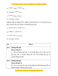 B. 1,45rad / s ; 1,16.10 m / s . 4 C. 1,45.10 rad / s ; 1,16 m/s. D. 1,45 rad/s; 1,16 m/s. Câu Đáp án Câu 1 Hư ng d ớ ẫn gi i ả