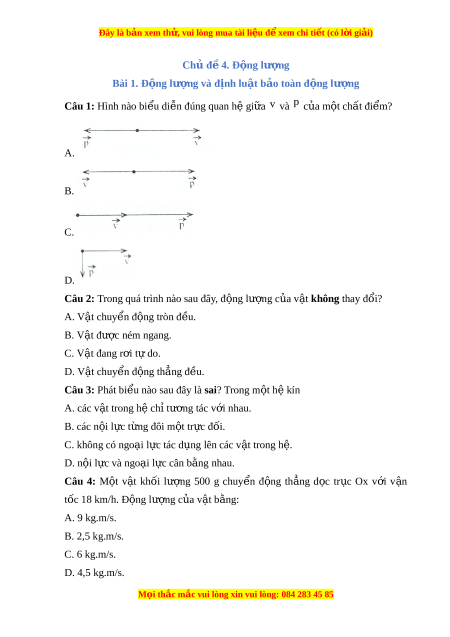 Đây là bản xem th , vu ử i lòng mua tài li u ệ đ xe ể m chi ti t ế (có l i ờ gi i ả ) Chủ đ 4. Đ ề ng l ộ ư ng ợ Bài 1. Đ ng l ộ ư ng và đ ợ nh l ị u t ậ b o t ả oàn đ ng l ộ ư ng ợ Câu 1: Hinh nao bi u ê di n ê đung quan h gi ê a ư v va p c a m u t ô chât đi m ê ? A. B. C. D.