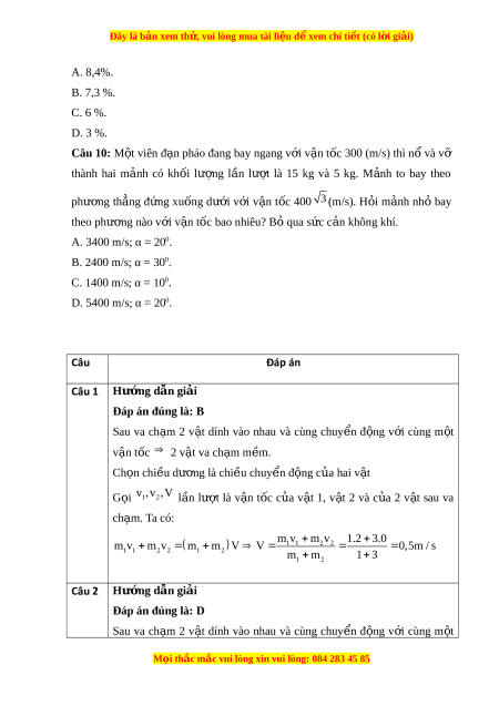 Đây là bản xem th , vu ử i lòng mua tài li u ệ đ xe ể m chi ti t ế (có l i ờ gi i ả ) A. 8,4%. B. 7,3 %. C. 6 %. D. 3 %. Câu 10: M t ộ viên đ n pháo đang bay ạ ngang v i ớ v n t