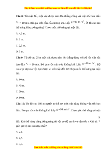 Câu 9: T đ cao 25 m m t v t đ c ném lên th ng đ ng v i đ l n v n t cừ ộ ộ ậ ượ ẳ ứ ớ ộ ớ ậ ố